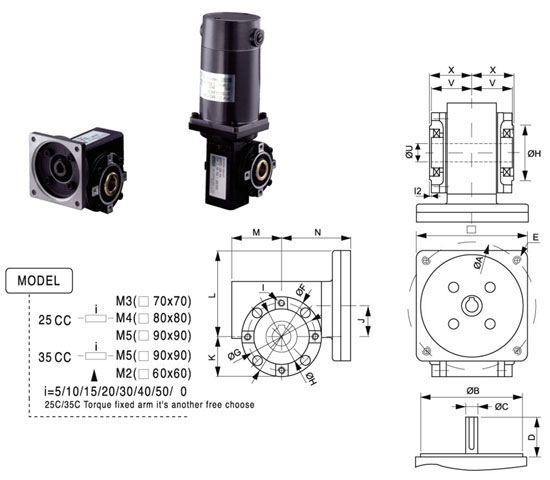 | 35 | 90×90 | 104 | 83 | 12 | 32 | M6 | 4x4x25 | 18 | 39.5 | 5×5×80 |