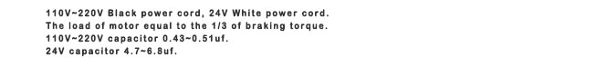 | 60Hz RPM | 50Hz RPM | 110V~220V | Black power cord Direction line |